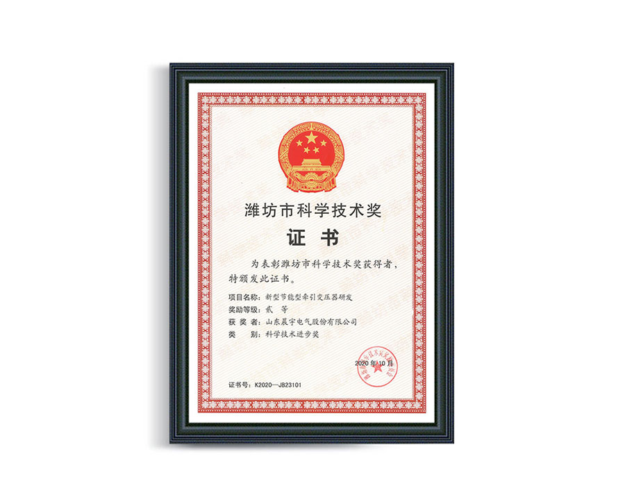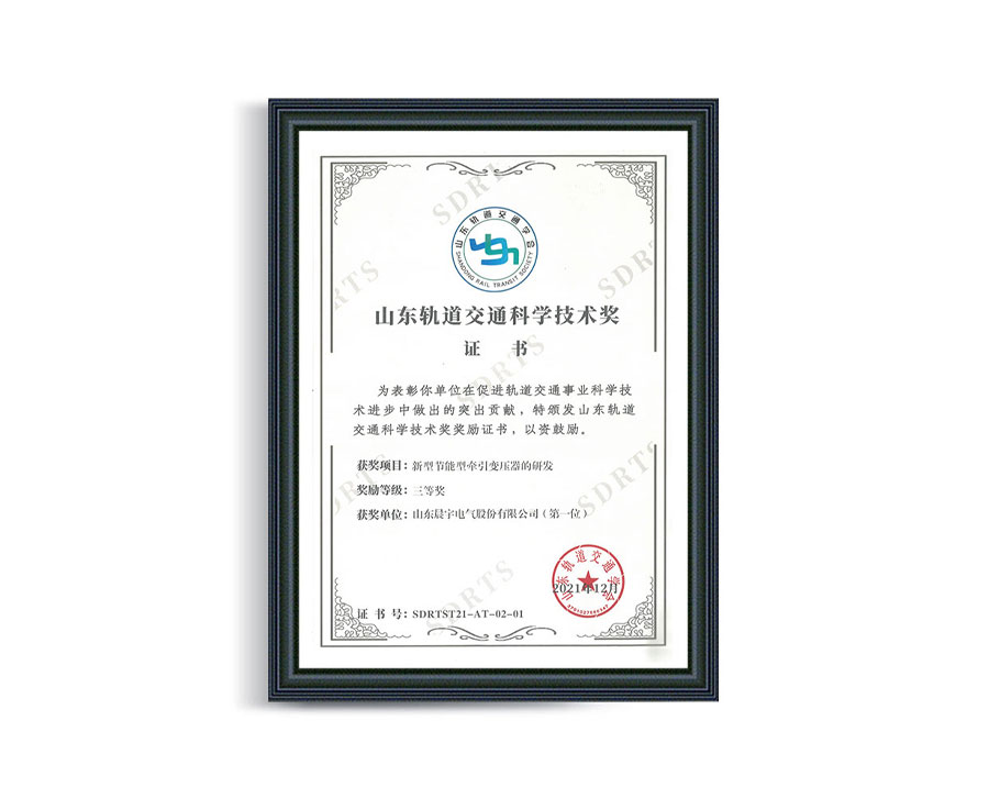 Shandong Rail Transit Science and Technology Award Certificate